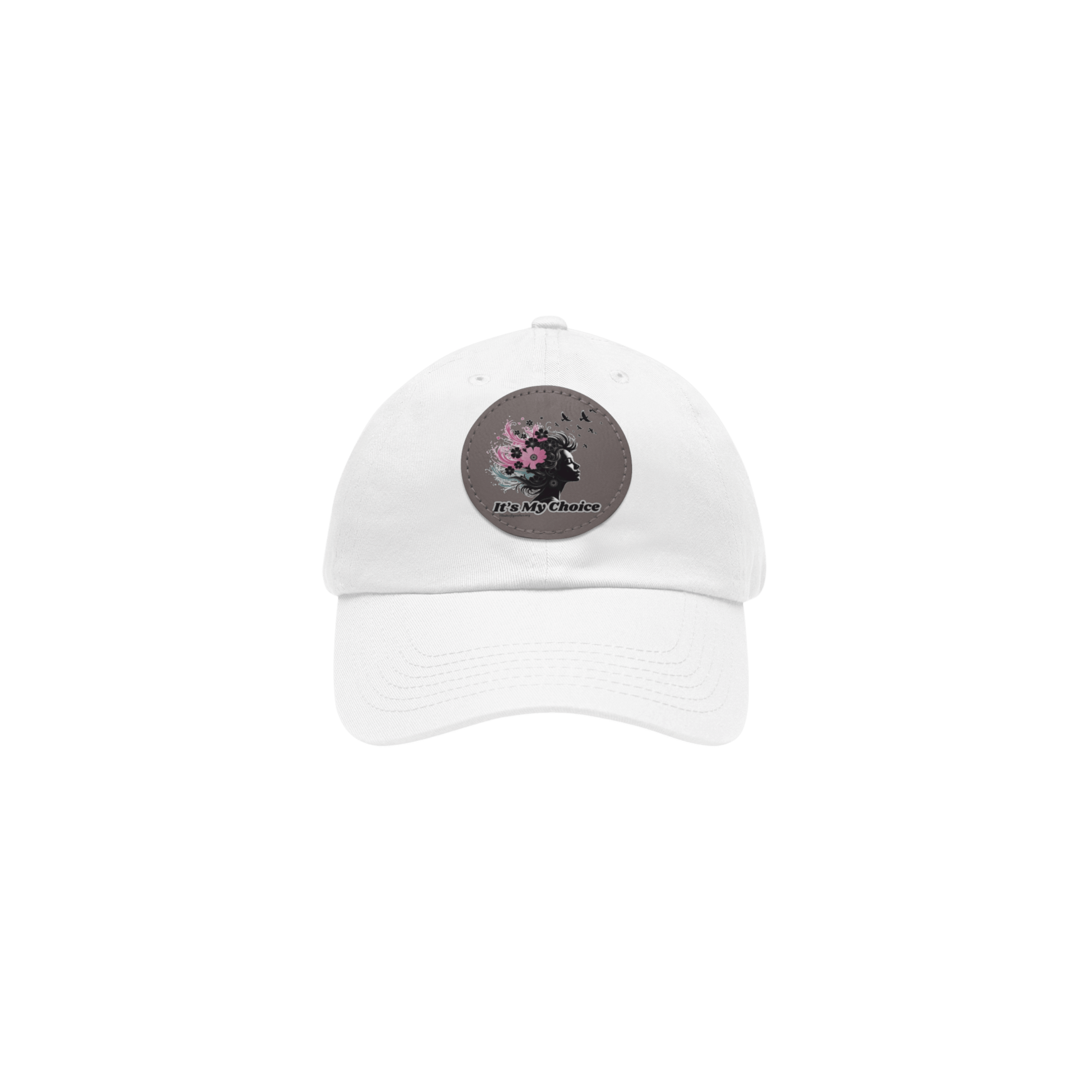 This Floral Dad Hat features a stylish leather patch bearing the slogan "It's My Choice". The hat's floral design adds a touch of femininity to a classic dad hat style. Perfect for a casual yet fashionable look.