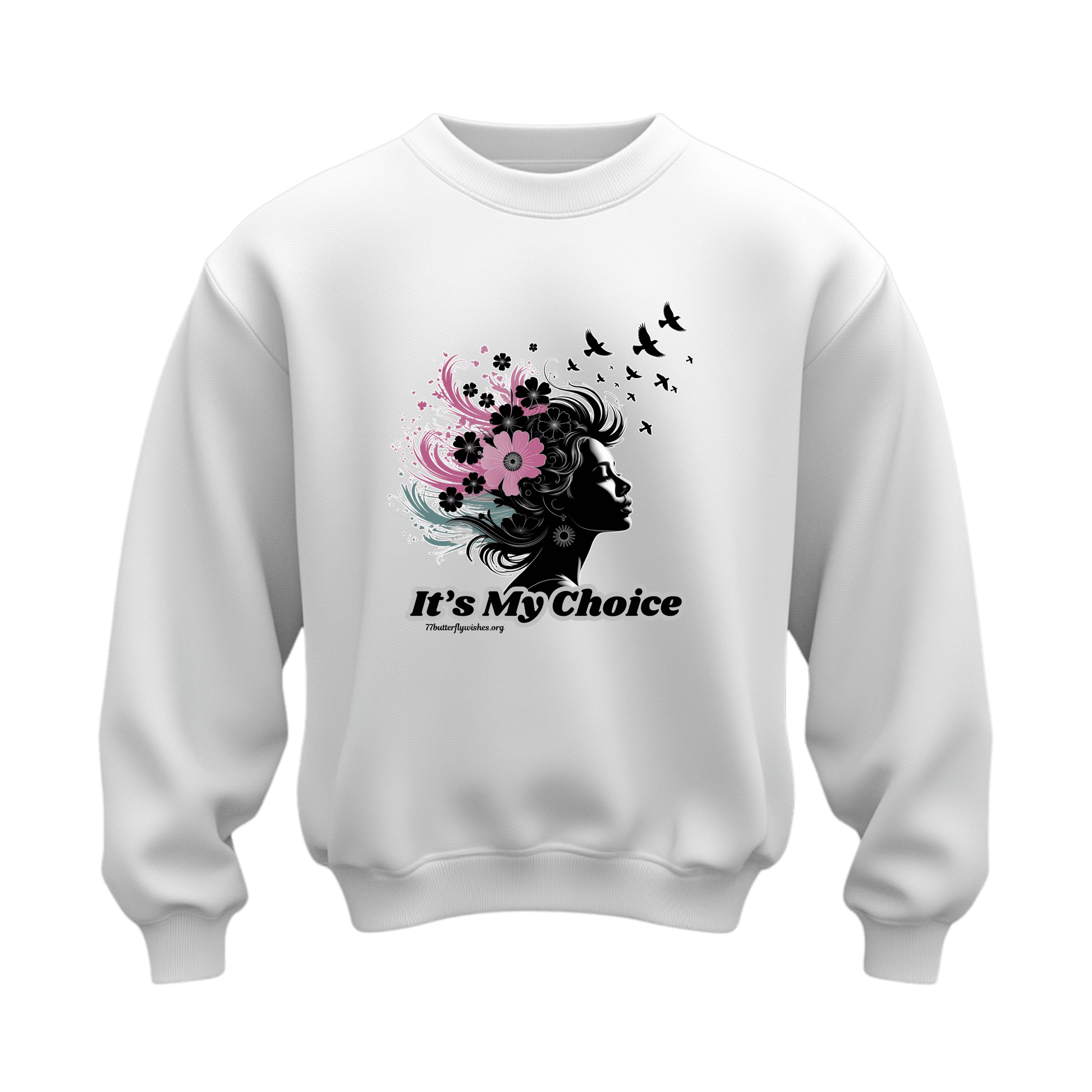 This Floral Silhouette Crewneck Sweatshirt features a bold "It's My Choice" design and is made from a heavy blend fabric, ensuring both style and comfort. The unisex fit makes it perfect for anyone, while the floral silhouette adds a touch of elegance. Make a statement and stay cozy with this sweatshirt.